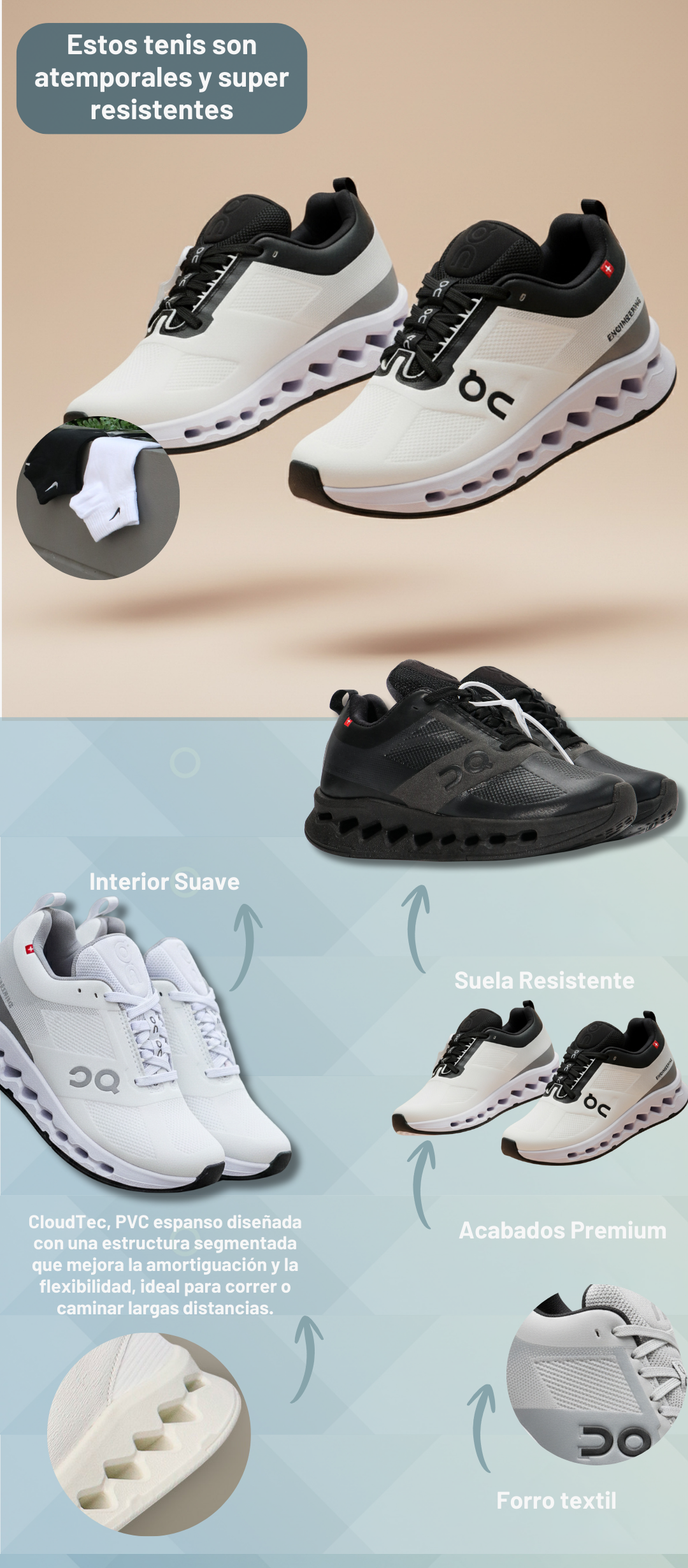 Sí. La parte superior está hecha en malla transpirable, perfecta para climas cálidos y húmedos. Mantiene tus pies frescos incluso en zonas como la Costa o el Valle.