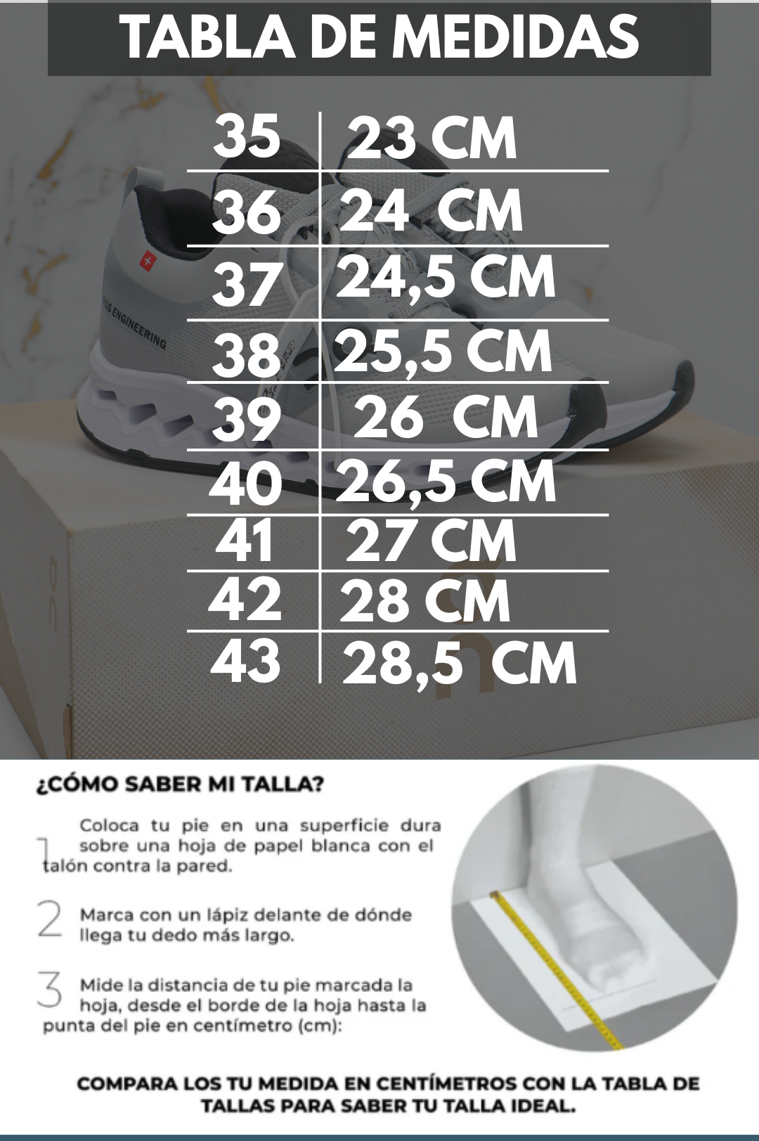 Este modelo es neutral, ideal para quienes no necesitan soporte adicional. Si tienes una pronación marcada, se recomienda usar una plantilla ortopédica personalizada.