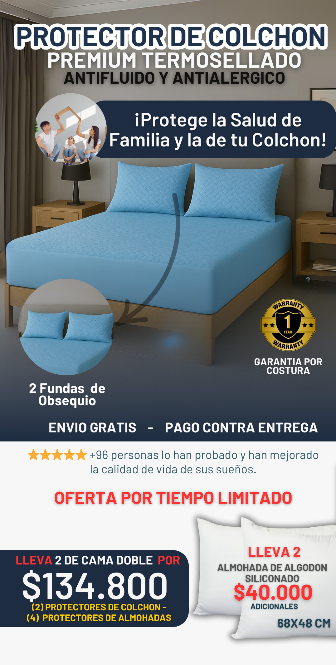 Nuestros protectores combinan tejido de microfibra de poliéster de alta densidad con guata siliconada de 100 g, ofreciendo suavidad, ligereza y excelente capacidad termorreguladora.